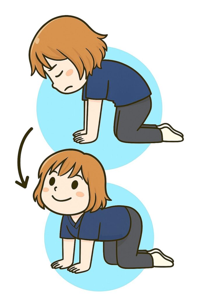 - 四つ這いで背中を丸めたり反らしたり(キャット&カウ)