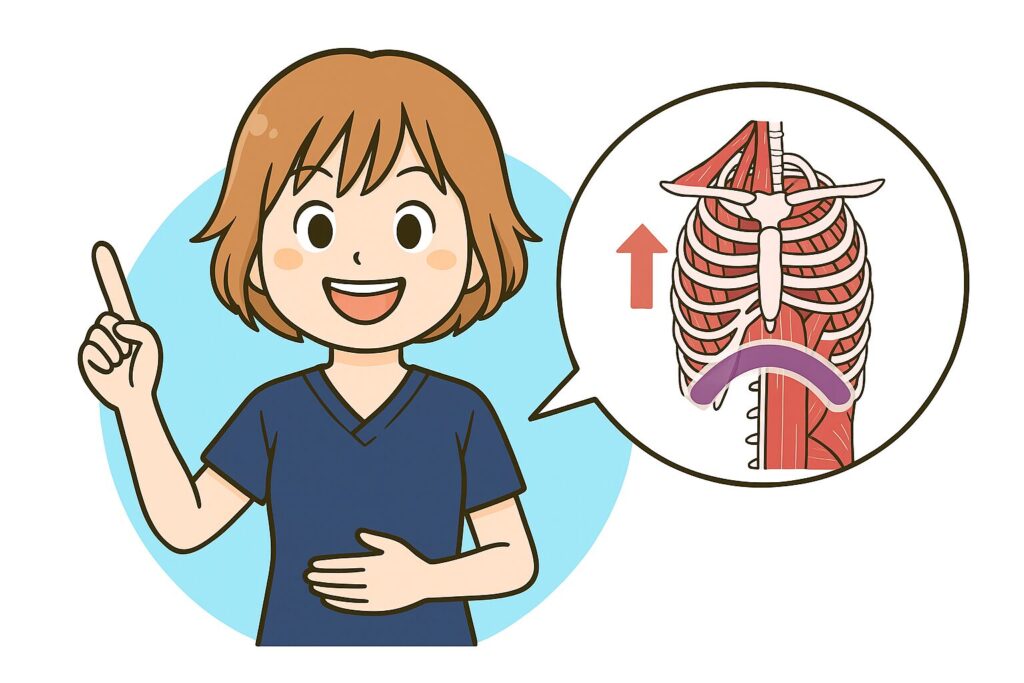 これは胸やお腹まわりの筋肉(肋間筋や横隔膜)が十分に動けないため。