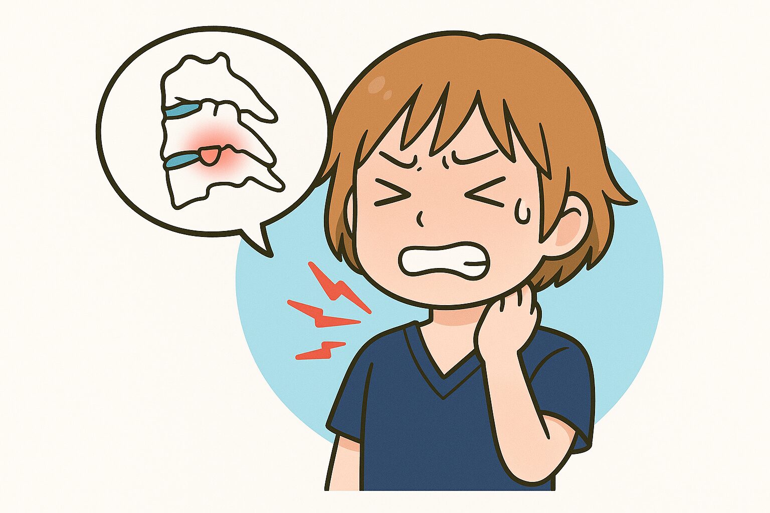 頚椎症とは、首の骨(頚椎)や椎間板が加齢や姿勢の影響で変形し、神経や脊髄を圧迫してしまう状態です。