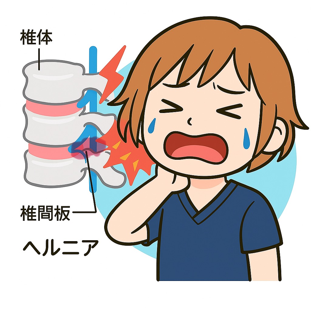 背骨と背骨の間にある「椎間板」が飛び出し、神経を圧迫する病気です。